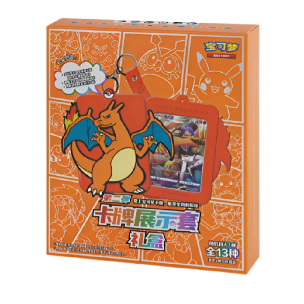 A Box Pokémon TCG – Card Display Set Charizard é um conjunto de presente oficial lançado na versão chinesa do Pokémon TCG, trazendo um design vibrante e colecionável inspirado no icônico Charizard.